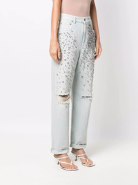 Women's bleached jeans with cabochon crystals