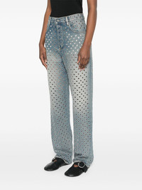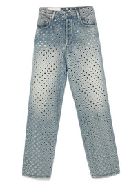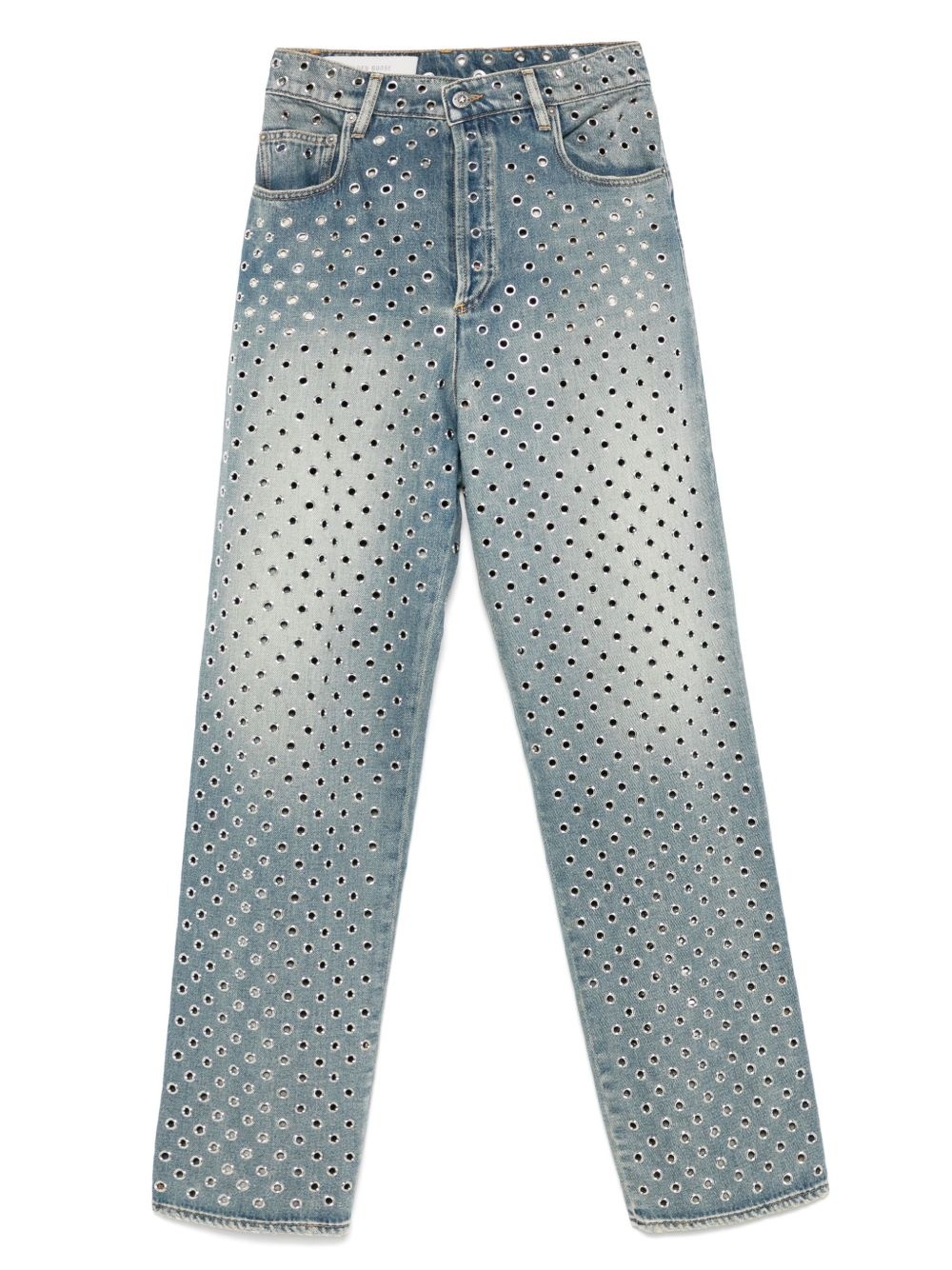 Kim jeans Highlights - Cerulean blue - Concealed front button fastening - Belt loops - Classic five pockets - Applique logo Made in Italy Composition Lining: Polyester 65%, Cotton 35% Outer: Cotton 100% SIZE & FIT Model measurements Height 5 ft 11 in(1.8 m) Bust/Chest 31.49 in(80 cm) Hips 36.61 in(93 cm) Waist 24.4 in(62 cm) FittingInformation Designed for a tapered fit, these jeans allow a close fit at the waist and a loose unrestricted fit over the leg with a closer fit towards the ankle Sturdy and hard-wearing, this denim piece offers no stretch