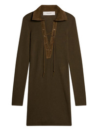 lace-up collared knitted mini dress Highlights - Olive green - Ribbed knit - Suede collar - Lace-up detail - Long sleeves - Straight hem Made in Italy Composition Virgin Wool 100%, Sheepskin 100%