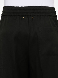 Lennon trousers Highlights - Black - Virgin wool - Gabardine weave - Elasticated waistband with internal drawstring - Front zip fastening - Mid-rise - Two side slash pockets - Pressed crease - Applique logo to the rear - Rear patch pocket - Tapered leg Made in Italy Composition Lining: Cotton 100% Outer: Virgin Wool 100% SIZE & FIT Model measurements Height 6 ft 2 in(1.87 m) Bust/Chest 35.82 in(91 cm) Hips 35.82 in(91 cm) Waist 31.88 in(81 cm) FittingInformation Designed for a straight-leg, allowing for an unrestricted and comfortable fit over the leg The elasticated waist allows for a comfortable fit Made from a midweight non-stretch fabric