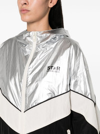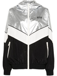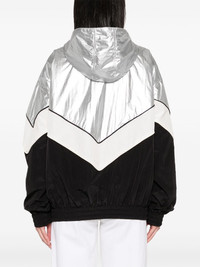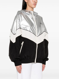 Letizia hooded windbreaker jacket Highlights - Black/white/silver-tone - Logo print at the chest - Front zip fastening - Two side zip-fastening pockets - Long sleeves - Classic hood - Elasticated hem Made in Italy Composition Outer: Nylon 100%, Polyamide 100% Lining: Polyester 100%, Nylon 100% SIZE & FIT Model measurements Height 5 ft 10 in(1.78 m) Bust/Chest 33.07 in(84 cm) Hips 35.82 in(91 cm) Waist 25.98 in(66 cm) FittingInformation Designed to be unstructured, offering a loose fit throughout The elasticated hem allows for movement and a comfortable fit Made from a midweight non-stretch fabric This piece fits true to size – take your usual size Washing instructions Machine Wash