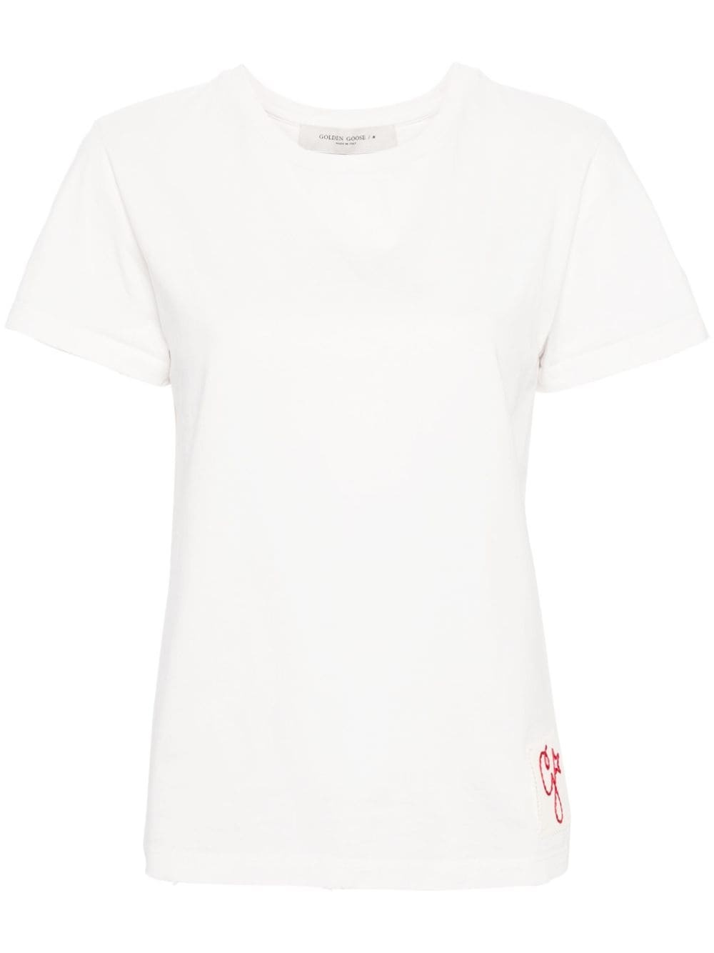 logo-patch cotton T-shirt Highlights - White - Cotton - Lightweight jersey - Distressed finish - Logo patch to the front - Silver-tone logo plaque - Crew neck - Short sleeves - Straight hem Made in Italy Composition Cotton 100% SIZE & FIT Model measurements Height 5 ft 10 in(1.78 m) Bust/Chest 31.49 in(80 cm) Hips 35.03 in(89 cm) Waist 23.62 in(60 cm) FittingInformation Designed for a relaxed fit, this piece allows for comfort and movement when worn Made from a midweight non-stretch fabric, this piece offers minimal elasticity when worn This piece fits true to size – take your usual size