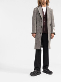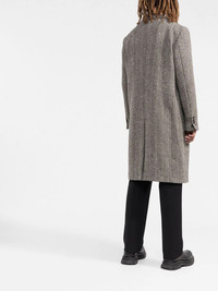 Men's single-breasted wool coat with beige and gray herringbone weave