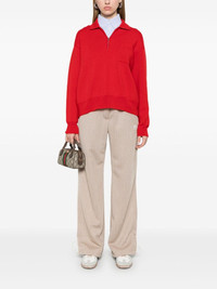 logo-print track pants Highlights - Light beige - Wide ribbed - Logo print at the leg - Elasticated waistband with internal drawstring - Piped-trim detailing - Two diagonal pockets to the sides - Rear patch pocket - Drawstring elasticated ankles Made in Italy Composition Lining: Cotton 100% Outer: FSC Polyester 100% SIZE & FIT Model measurements Height 5 ft 9 in(1.75 m) Bust/Chest 31.88 in(81 cm) Hips 34.64 in(88 cm) Waist 24.01 in(61 cm) FittingInformation Designed for a straight-leg fit, these trousers allow for a close fit at the waist and an unrestricted, comfortable fit over the leg Adjust this piece’s waistband to your preference using the drawstring Made from a midweight non-stretch fabric, this piece offers minimal elasticity when worn
