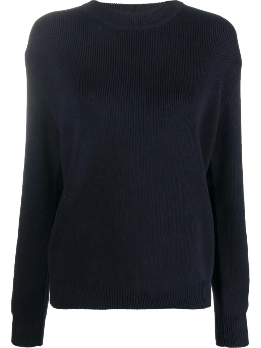 Women’s round-neck sweater in dark blue cotton with logo on the back