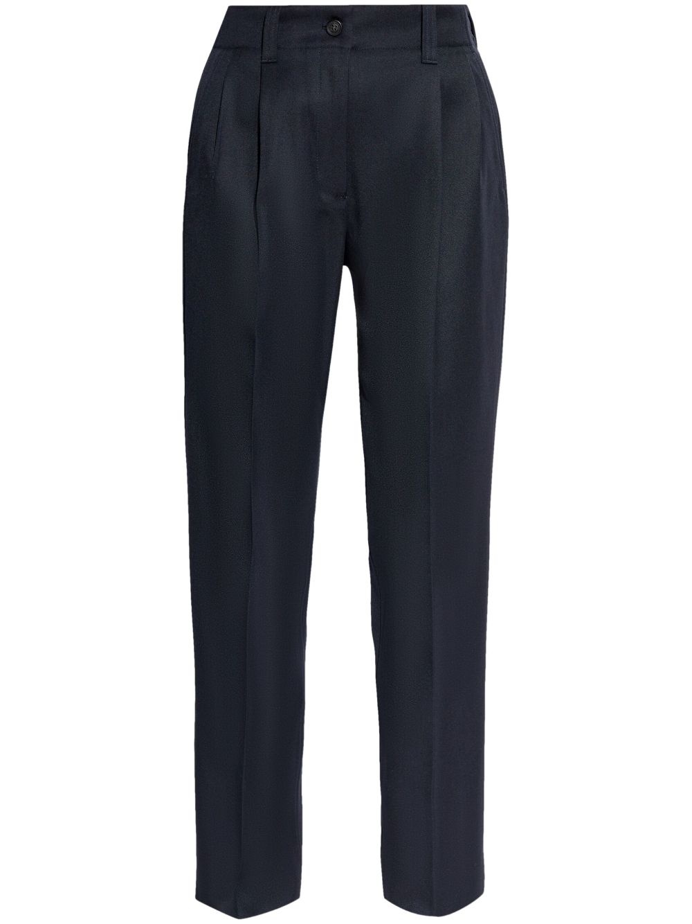 loose-fit straight-leg trousers Highlights - Navy blue - Wool blend - Twill weave - Front zip fastening - Mid-rise - Belt loops - Pleat detailing - Slip pockets to the sides - Two rear button-fastening jetted pockets - Signature star detail at the rear - Straight leg Made in Italy Composition Polyester 55%, Wool 45%