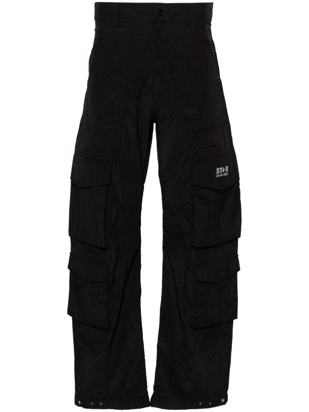 Luther wide-leg cargo trousers Highlights - Black - Crinkled finish - Ripstop texture - Logo print to the front - Mid-rise - Belt loops - Front press-stud and zip fastening - Classic five pockets - Multiple cargo pockets - Wide leg - Press-stud fastening ankles Made in Italy Composition Nylon 100% SIZE & FIT Model measurements Height 6 ft 2 in(1.87 m) Bust/Chest 36.41 in(92.5 cm) Hips 35.43 in(90 cm) Waist 29.52 in(75 cm) FittingInformation Designed with a wide leg, offering a loose and roomy fit The adjustable tabs allow for fitted preferences Made from a midweight non-stretch fabric This piece fits true to size – take your usual size Washing instructions Machine Wash