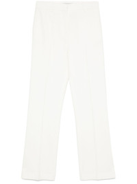 Maewa trousers Highlights - White - Concealed front button, hook and zip fastening - Belt loops - Two side slit pockets - Applique logo Made in Italy Composition Outer: Viscose 70%, Virgin Wool 30% Lining: Cotton 100% SIZE & FIT Model measurements Height 5 ft 11 in(1.8 m) Bust/Chest 33.07 in(84 cm) Hips 37.4 in(95 cm) Waist 25.19 in(64 cm) FittingInformation Designed for a straight-leg fit, these trousers allow for a close fit at the waist and an unrestricted, comfortable fit over the leg Made from a midweight non-stretch fabric