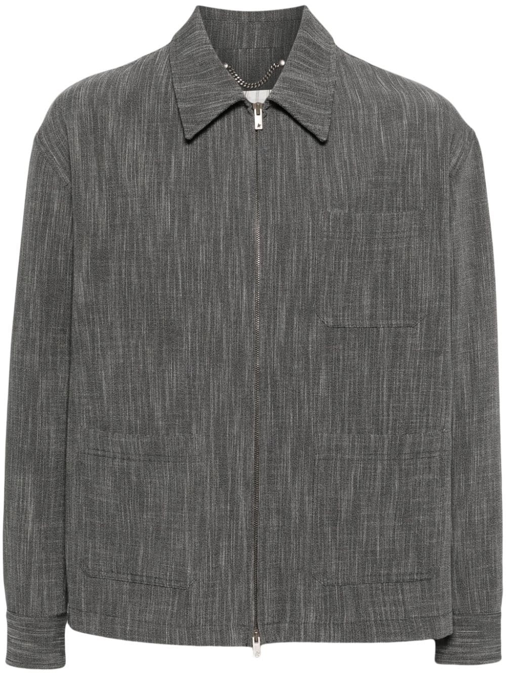 melange virgin wool-blend shirt jacket Highlights - Medium grey - Virgin wool blend - Melange effect - Branded zip puller - Spread collar - Front zip fastening - Long sleeves - Three front patch pockets - Straight hem Made in Italy Composition Outer: Virgin Wool 60%, Viscose 26%, Polyester 14% Lining: Polyester 100%, Acetate 53%, Viscose 47% SIZE & FIT Model measurements Height 6 ft 2 in(1.87 m) Bust/Chest 37 in(94 cm) Hips 33.85 in(86 cm) Waist 27.95 in(71 cm) FittingInformation Designed for a regular fit, allowing for a comfortably loose fit throughout the body Made from a midweight non-stretch fabric This piece fits true to size – take your usual size