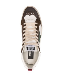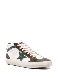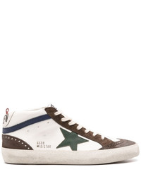 Mid-Star leather sneakers Golden Goose injects a casual coolness into these Mid-Star leather sneakers. The iconic star patch lends a recognisable look, while elegant English-style eyelets on the toe complete its design. Highlights - White/multicolour - Calf leather - Logo patch at the tongue - Signature star patch to the sides - Logo print to the side - Perforated detailing - Branded heel counter - Round toe - Front lace-up fastening - Pull-tab at the heel - Branded insole - Flat rubber sole Made in Italy Composition Lining: Cotton 100%, Calf Leather 100% Outer: Buffalo Leather 100% Sole: Rubber 100% SIZE & FIT Measurement HEEL 0.59 in(1.5 cm) HEIGHT 2.95 in(7.5 cm) Sole height 0.39 in(1 cm)