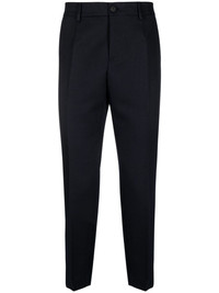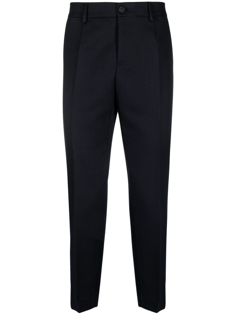 Milano tailored tapered trousers The Milano tailored trousers from Golden Goose are a neat style that can transition from casual with the brand's distressed sneakers or taken to an elevated smart look. The straight-leg pair have been crafted in Italy and presented in a dark blue hue. Highlights - Midnight blue - Twill weave - Tailored design - Belt loops - Two side slash pockets - Dart detailing to the front - Pressed crease - Ankle-length - Logo plaque to the rear - Two rear button-fastening jetted pockets - Tapered leg - Concealed fly and button fastening Made in Italy Composition Lining: Viscose 100%, Polyester 65%, Cotton 35% Outer: Polyester 66%, Virgin Wool 34% SIZE & FIT Model measurements Height 6 ft 1 in(1.85 m) Bust/Chest 35.82 in(91 cm) Hips 37.79 in(96 cm) Waist 29.13 in(74 cm) FittingInformation Designed for a slim fit, offering a comfortable fit that sits just away from the leg Made from a midweight non-stretch fabric This piece fits true to size – take your usual size Washing instructions Dry Clean Only