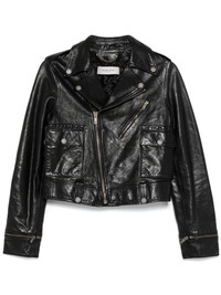 Nevada New jacket Highlights - Black - Off-centre front zip fastening - Zip-fastening chest pocket - Two side flap pockets - Belt loops Made in Italy Composition Lining: Viscose 100%, Polyester 100%, Cotton 100% Outer: Sheepskin 100% SIZE & FIT Model measurements Height 5 ft 11 in(1.8 m) Bust/Chest 33.07 in(84 cm) Hips 37.4 in(95 cm) Waist 25.19 in(64 cm) FittingInformation Designed for a slim fit that sits just away from the body offering a close yet comfortable fit Soft leather has a supple and smooth construction offering some flexibility