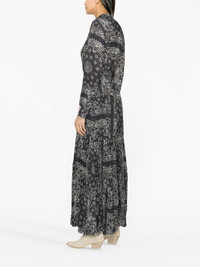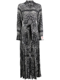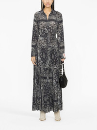 paisley-print maxi shirtdress Illustrating Golden Goose's playful spirit, this maxi shirtdress is adorned with a paisley pattern in monochrome tones. It's stitched with a contrasting logo patch at one cuff. Highlights - Anthracite grey/white - Logo patch at the sleeve - Yoke design - Spread collar - Front button fastening - Long sleeves - Buttoned-cuff sleeves - Belted waist - Pleat detailing - Two side inset pockets - Flared - Straight hem - Long length Made in Italy Composition Viscose 100% SIZE & FIT Model measurements Height 5 ft 10 in(1.77 m) Bust/Chest 32.67 in(83 cm) Hips 35.43 in(90 cm) Waist 23.62 in(60 cm) FittingInformation Designed to be unstructured, offering a loose fit throughout The adjustable tie waist gives a more adaptable and personalised fit Made from a midweight non-stretch fabric This piece fits true to size – take your usual size