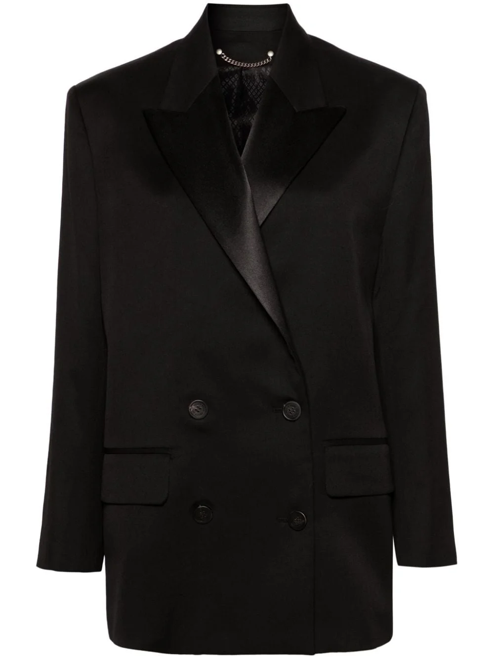 peak-lapels double-breasted blazer Highlights - Black - Virgin wool - Twill weave - Peak lapels - Double-breasted button fastening - Shoulder pads - Long sleeves - Buttoned cuffs - Two front flap pockets - American rear vent - Straight hem - Full lining Made in Italy Composition Outer: Virgin Wool 100%, Polyester 100% Lining: Acetate 54%, Viscose 46% SIZE & FIT Model measurements Height 5 ft 11 in(1.8 m) Bust/Chest 34.25 in(87 cm) Hips 35.82 in(91 cm) Waist 24.8 in(63 cm) FittingInformation Designed for a relaxed fit, this piece allows for comfort and movement when worn The adjustable drawstring means that you can adjust this piece’s fit to suit your comfort and preference Made from a midweight non-stretch fabric This piece fits true to size – take your usual size Washing instructions Dry Clean Only