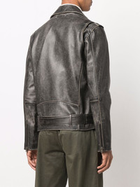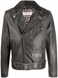 leather biker jacket black leather grained texture garment dyed notched lapels off-centre front zip fastening front zip fastening pockets long sleeves belted waist full lining Made in Italy Composition Outer: Calf Leather 100% Lining: Cotton 100%, Polyester 100% SIZE & FIT Model measurements Height 6 ft 2 in(1.87 m) Bust/Chest 38.18 in(97 cm) Hips 36.61 in(93 cm) Waist 29.13 in(74 cm) FittingInformation This piece fits true to size. We recommend you get your regular size Cut for a loose fit Made with a mid-weight non-stretch fabric Washing instructions Specialist Cleaning