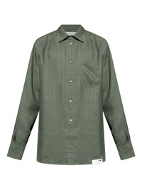 pinstripe buttoned-cuff shirt Highlights - Olive green - Pinstripe pattern - Long sleeves - Button fastening - Point collar - Chest pocket Made in Italy Composition Viscose 100% Washing instructions Read Manufacturer Guidelines