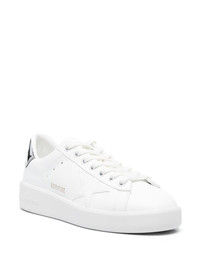 Purestar faux-leather sneakers Golden Goose adopts a minimalist ethos when crafting these Purestar sneakers. Made from white leather, they are accented by a tonal star patch on the side and a contrasting laminated heel counter. Highlights - White/silver-tone - Faux leather - Signature star patch to the sides - Front lace-up fastening - Round toe - Contrasting branded heel counter - Flat rubber sole Made in Italy Composition Other fibres 100% SIZE & FIT Measurement HEEL 1.57 in(4 cm) Sole height 0.98 in(2.5 cm)