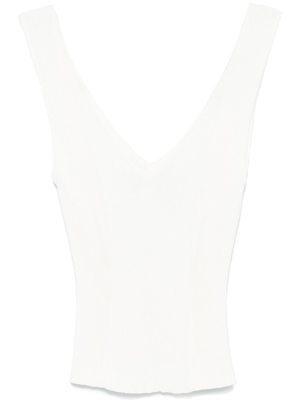 ribbed top Highlights - Light beige - Fine ribbed - V-neck - Sleeveless Made in Italy Composition Viscose 100% SIZE & FIT Model measurements Height 5 ft 11 in(1.8 m) Bust/Chest 31.49 in(80 cm) Hips 35.82 in(91 cm) Waist 24.8 in(63 cm) FittingInformation Designed for a close fit throughout Made with a midweight knit, this piece offers some stretch