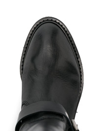 High Biker boots in black leather with silver studs and buckles