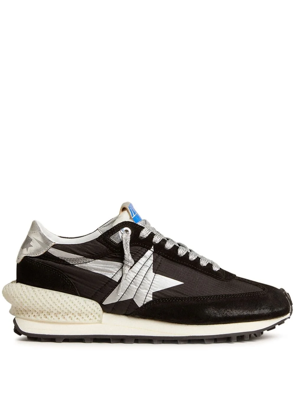 Running Marathon panelled sneakers Highlights - Black/silver-tone - Sheepskin - Suede panelling - Panelled design - Glitter detailing - Star print - Applique logo - Round toe - Front lace-up fastening - Contrasting branded heel counter - Branded insole - Flat rubber sole Made in Italy Composition Leather 100%