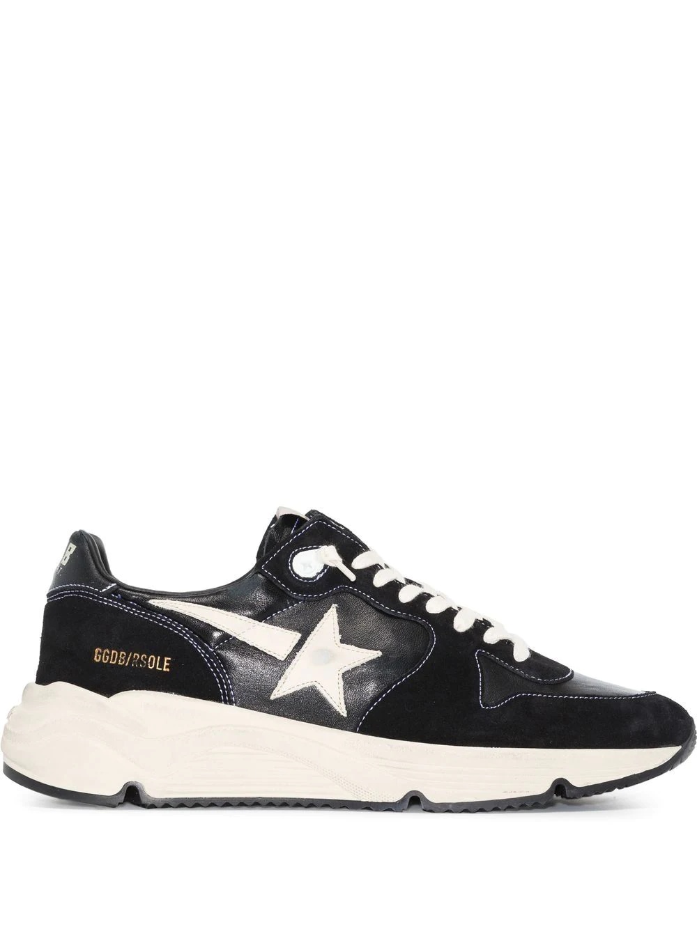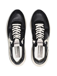Running Sole low-top sneakers Golden Goose's Running Sole sneakers are seen here in a black iteration. Boasting a chunky sole inspired by running shoes, the pair is completed by the brand's signature star patch to the sides, which is brought to focus by the black colourway. Made in Italy Composition Outer: Calf Leather 100% Sole: Rubber 100% Lining: Fabric 100% SIZE & FIT Model measurements Height 6 ft 1 in(1.86 m) Bust/Chest 32.67 in(83 cm) Hips 34.25 in(87 cm) Waist 25.19 in(64 cm) FittingInformation This piece fits large – take one size down Measurement HEEL 2.16 in(5.5 cm) Sole height 1.37 in(3.5 cm)