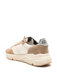 Running Sole sneakers Golden Goose's signature celestial motif is refreshed as a shooting star on these white and brown Running Sole sneakers. They’re made from panels of shell and suede with tapered soles that nod to their sporty inspirations. Highlights - Ivory white/tobacco brown - Suede/shell - Signature star patch to the sides - Logo print to the side - Logo patch at the tongue - Contrasting branded heel counter - Front lace-up fastening - Round toe - Branded leather insole - Chunky rubber sole - This piece comes complete with a protective dust bag. - This piece comes with a certificate of authenticity. Made in Italy Composition Outer: Fabric 100%, Calf Leather 100% Lining: Calf Leather 100%, Fabric 100% Sole: Rubber 100% SIZE & FIT Measurement HEEL 1.96 in(5 cm) Sole height 0.98 in(2.5 cm)