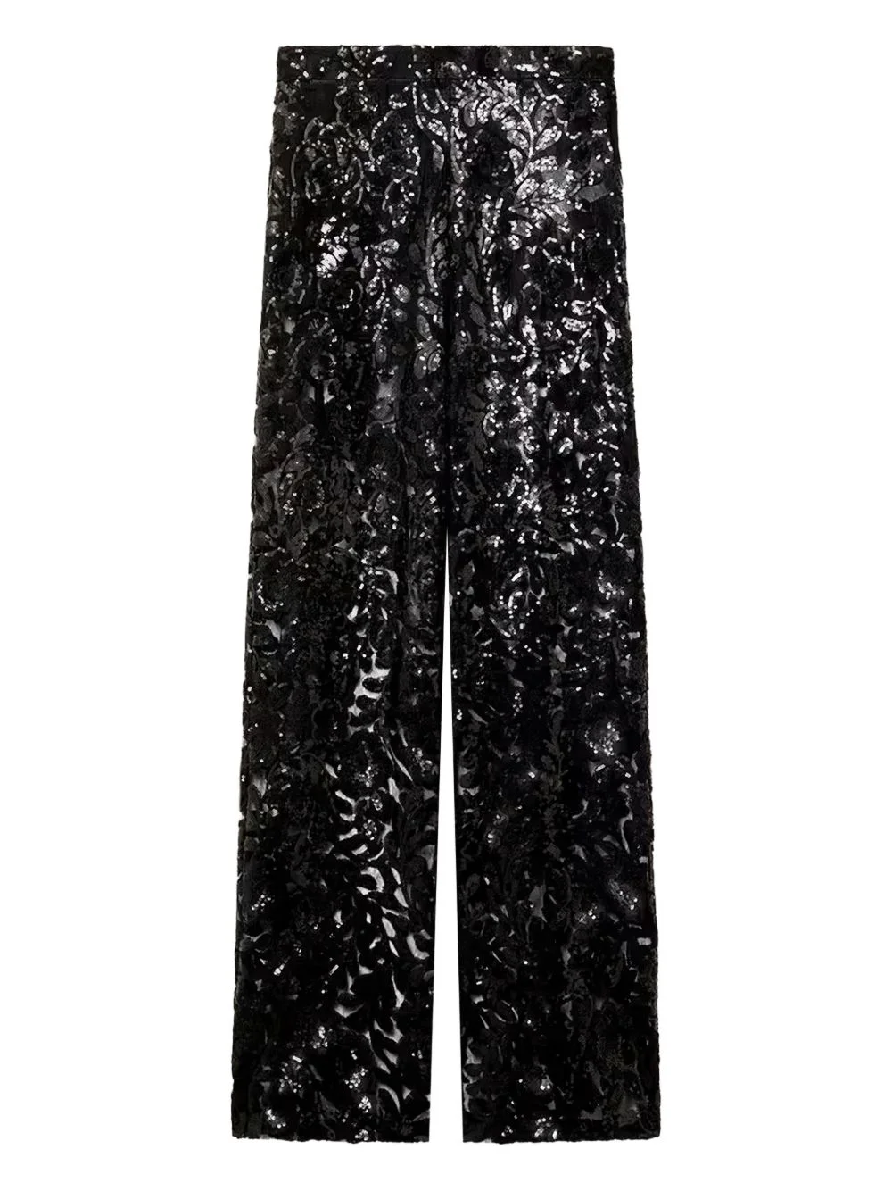 sequined trousers Highlights - Black - Sequin embellishment - Concealed zip fastening Made in Italy Composition Polyester 100% Washing instructions Read Manufacturer Guidelines
