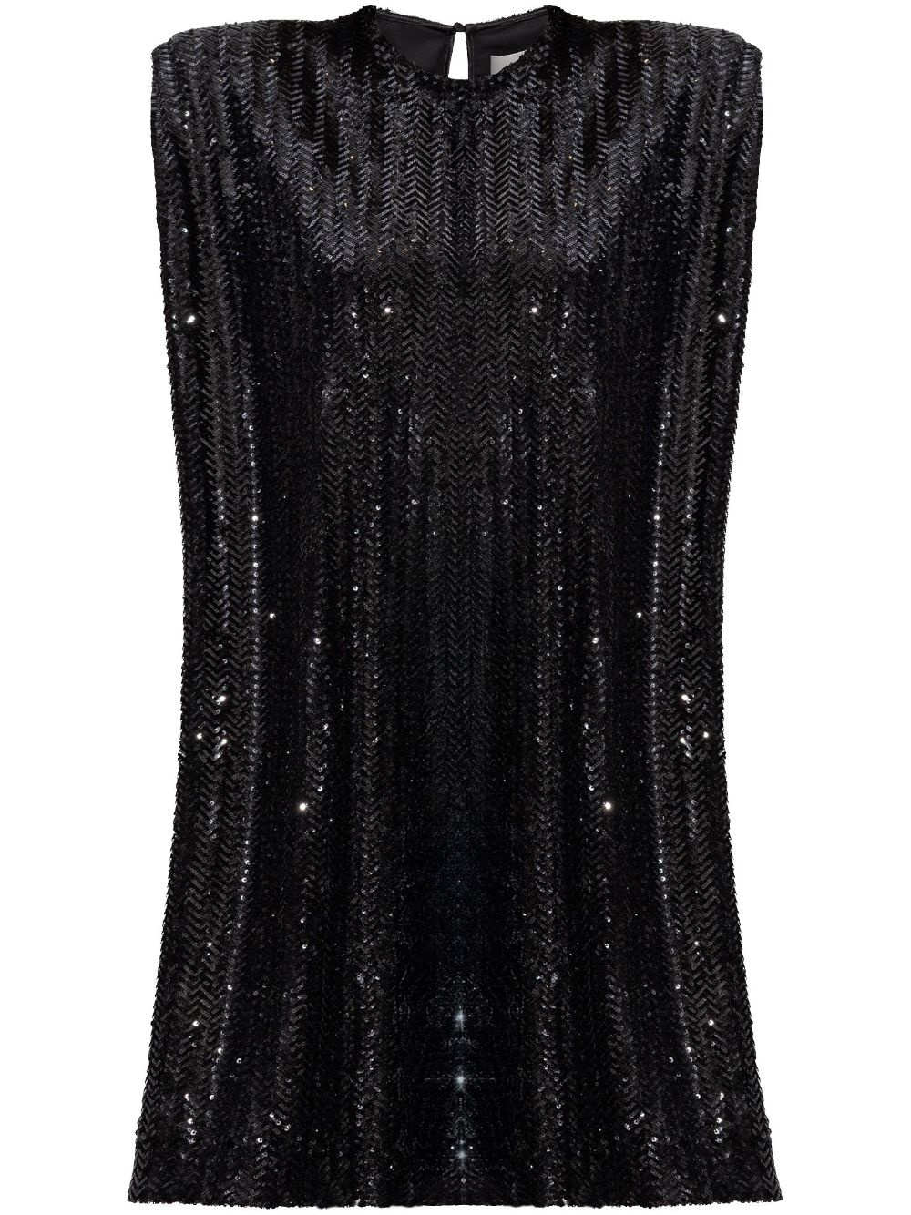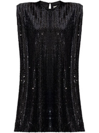 sequinned mini dress Highlights - Black - Rear button fastening - Shoulder pads - Sleeveless - Shift style Made in Italy Composition Sequin 100%, Polyamide 95%, Spandex/Elastane 5%