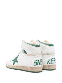 Sky Star sneakers Highlights - White/forest green - Calf leather - Smooth grain - Distressed finish - Front lace-up fastening - Embossed logo to the rear - Logo print to the side - Signature star patch to the sides - Logo patch at the tongue - Perforated toebox - Round toe - Fleece lining - Branded insole - Flat rubber sole Made in Italy Composition Outer: Calf Leather 100% Sole: Rubber 100% Lining: Cotton 100%, Calf Leather 100%, Foam 100% SIZE & FIT Measurement HEEL 1.18 in(3 cm) HEIGHT 4.33 in(11 cm) Sole height 0.78 in(2 cm)