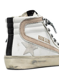 Slide high-top sneakers Golden Goose's Slide sneakers are designed with retro basketball styles in mind. Finished with the brand's signature distressed effect, it's punctuated with a contrasting curved detail at the sides and leopard-print laces. Made in Italy Composition Suede 100% SIZE & FIT Model measurements Height 5 ft 9 in(1.76 m) Bust/Chest 33.46 in(85 cm) Hips 37.79 in(96 cm) Waist 25.59 in(65 cm) FittingInformation This piece fits true to size. We recommend you get your regular size Measurement HEEL 0.98 in(2.5 cm) Sole height 0.78 in(2 cm)