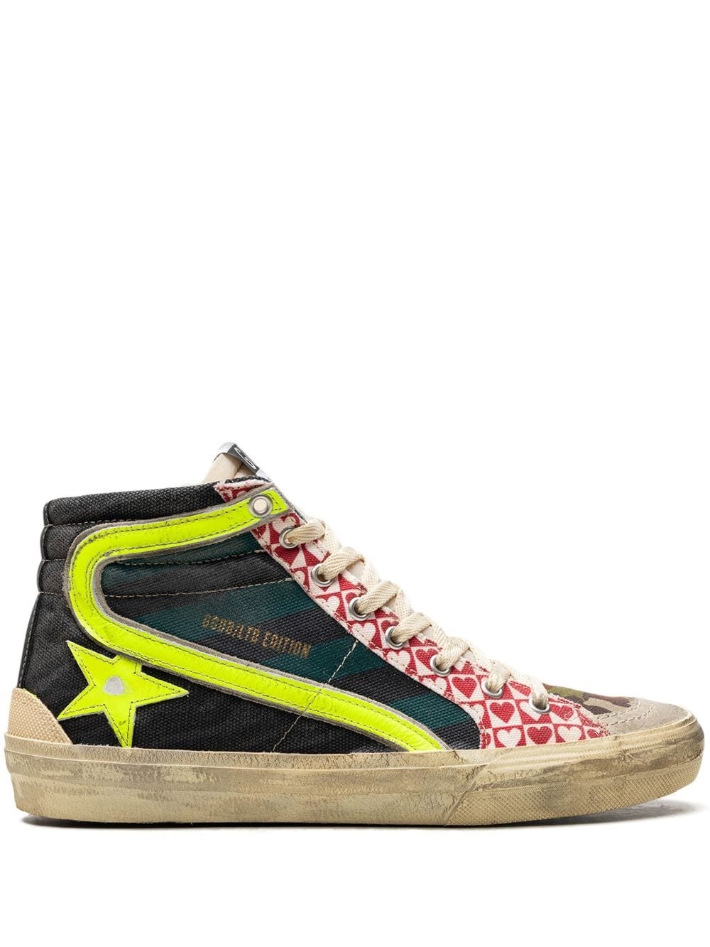Slide LAB sneakers Highlights - Multicolour - Canvas/faux leather/cotton blend - Distressed finish - Logo stamp at side - Signature star patch to the sides - Side stripe detailing - Round toe - Front lace-up fastening - Logo patch at the tongue - Branded insole - Rubber sole - These styles are supplied by a premium and authenticated sneaker marketplace. stocking only the most sought-after footwear, they source and curate some of the most hard to find sneakers from around the world. Made in Italy Composition Sole: Rubber 100% Outer: Canvas 100%, Cotton 68%, Bovine Leather (top grain) 24%, Polyurethane 8% Lining: Cotton 41%, Bovine Leather (top grain) 31%, Polyurethane 18%, Polyester 6%, Viscose 4%