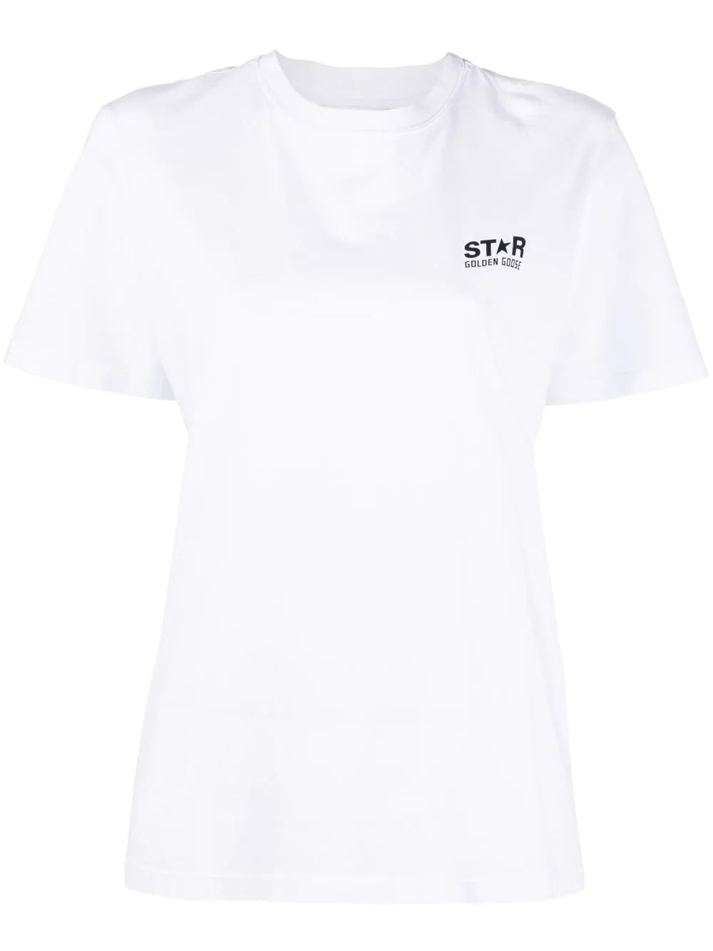 star-print short-sleeved T-shirt An instantly recognisable style, this white tee from Golden Goose is decorated with not one but two signatures. A contrasting logo print decorates the chest, while a large signature star print adorns the rear. Made in Italy Composition Cotton 100% SIZE & FIT Model measurements Height 5 ft 10 in(1.78 m) Bust/Chest 32.28 in(82 cm) Hips 35.03 in(89 cm) Waist 23.22 in(59 cm) FittingInformation This piece fits true to size. We recommend you get your regular size Cut for a relaxed fit Made with a mid-weight fabric