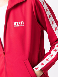star-print two-tone bomber jacket candy-red/white two-tone design star print logo print at the chest stand-up collar front zip fastening long sleeves elasticated hem Made in Italy Composition Polyester 100% SIZE & FIT Model measurements Height 5 ft 10 in(1.78 m) Bust/Chest 31.49 in(80 cm) Hips 36.22 in(92 cm) Waist 25.59 in(65 cm) Washing instructions Machine Wash