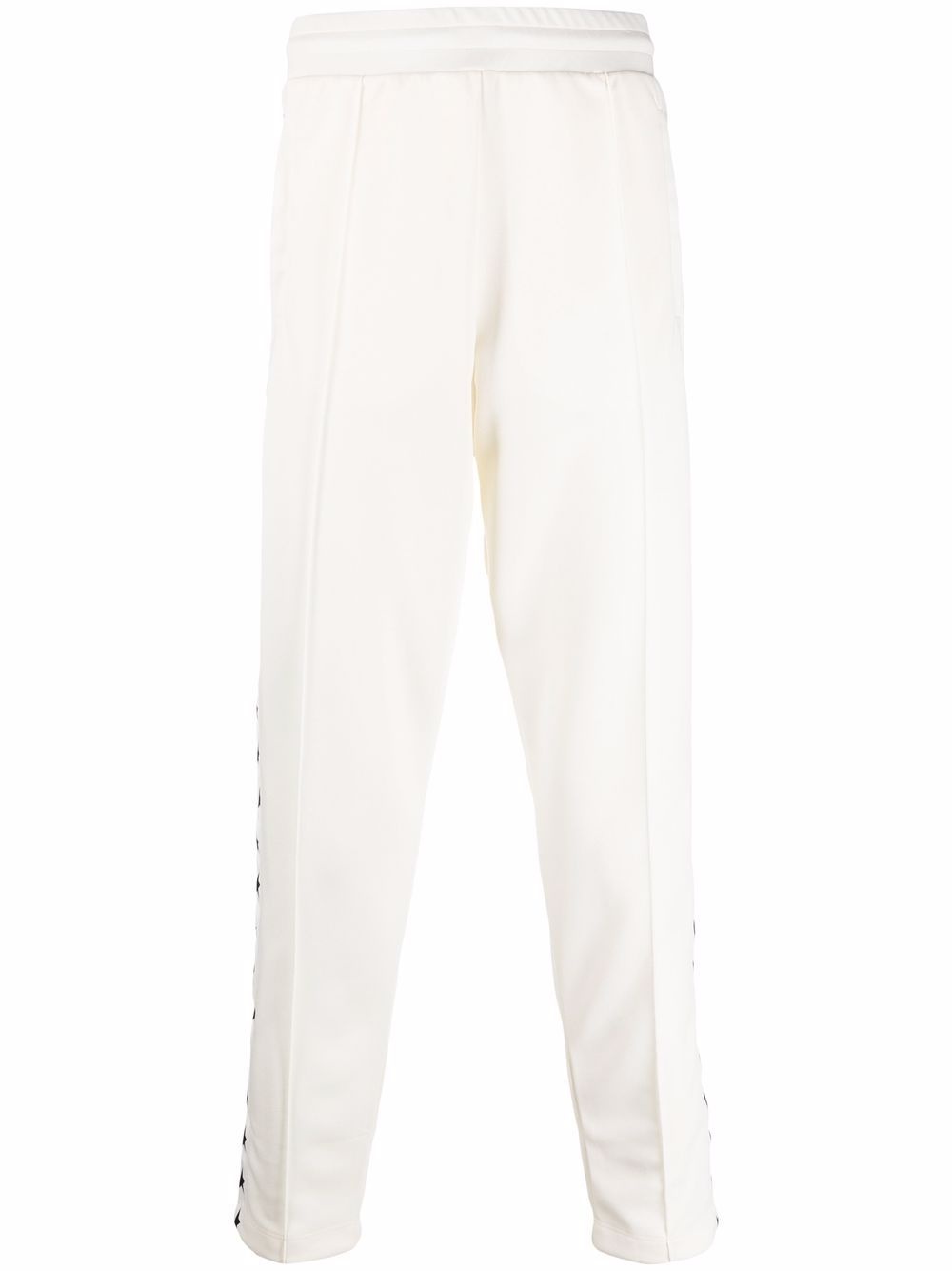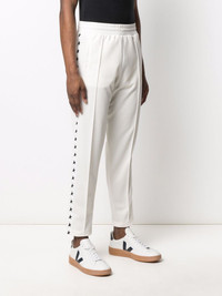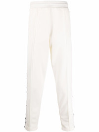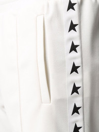 star-trim tailored track pants Derived from husband-and-wife team Alessandro Gallo and Francesca Rinaldo; Golden Goose combines Italian craft with understated cool. This pair of white cotton track pants are designed with a tailored finish and feature a star trim detail to each outer leg. Made in Italy Composition Lining: Cotton 100% Outer: Polyester 100% SIZE & FIT Model measurements Height 6 ft 2 in(1.89 m) Bust/Chest 35.43 in(90 cm) Hips 36.61 in(93 cm) Waist 28.74 in(73 cm) FittingInformation This piece fits true to size. We recommend you get your regular size Cut for a relaxed fit Made with a mid-weight fabric
