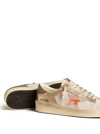 Stardan in white mesh with orange star and platinum leather inserts