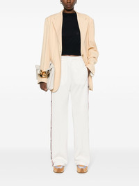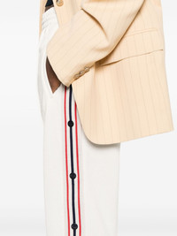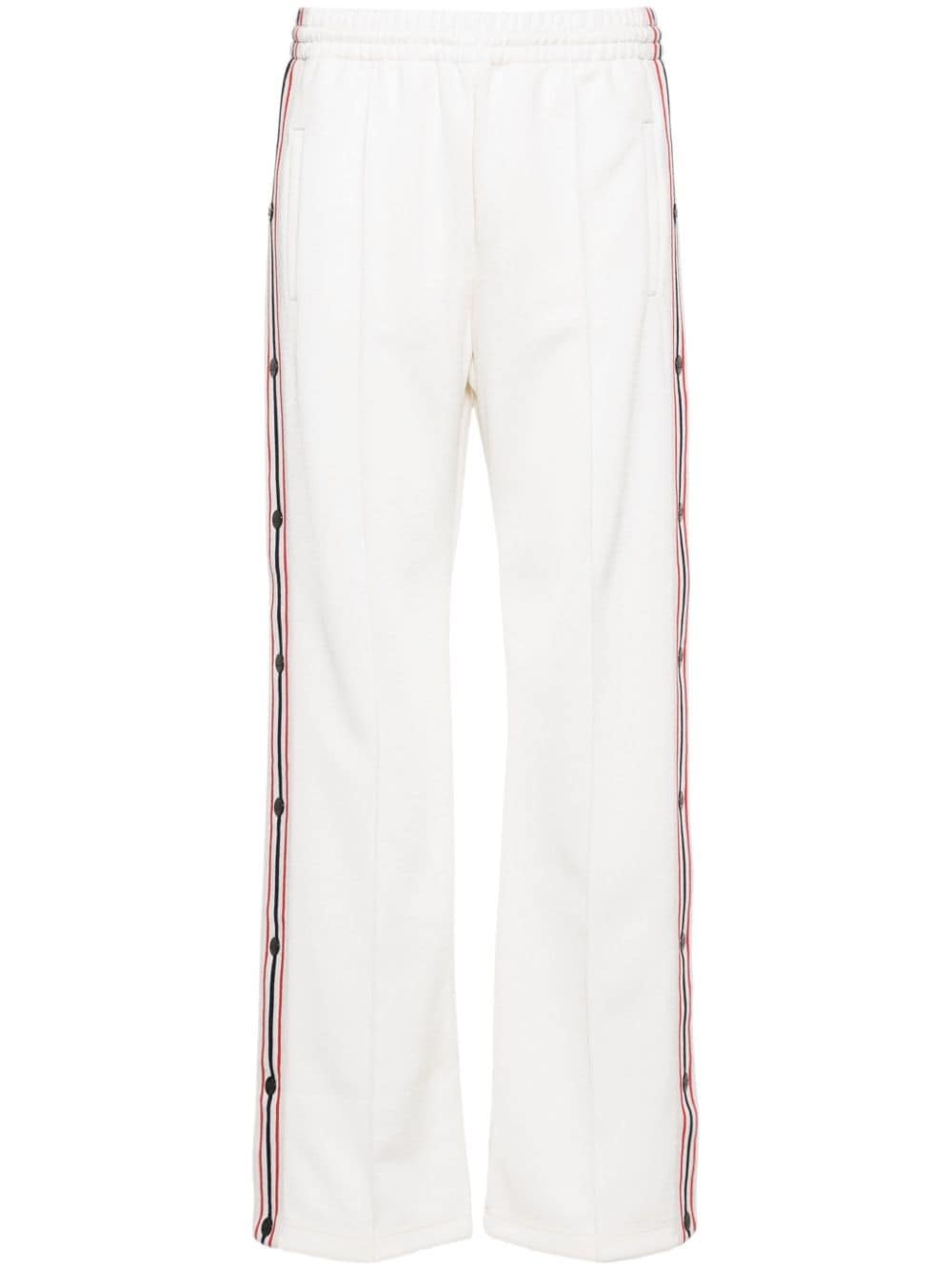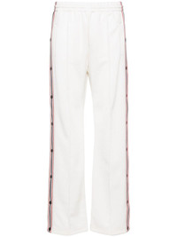 striped track pants Highlights - Cream white - Cotton - Textured finish - Elasticated waistband - Raised seam detail - Two side welt pockets - Side stripe detailing - Rear patch pocket - Straight leg - Side press-stud fastening - Internal drawstring fastening waist Made in Italy Composition Lining: Cotton 100% Outer: Polyester 100% SIZE & FIT Model measurements Height 5 ft 10 in(1.78 m) Bust/Chest 31.49 in(80 cm) Hips 37 in(94 cm) Waist 23.62 in(60 cm) FittingInformation Designed for a straight-leg fit, these trousers allow for a close fit at the waist and an unrestricted, comfortable fit over the leg Adjust this piece’s waistband to your preference using the drawstring Made from a midweight non-stretch fabric, this piece offers minimal elasticity when worn This piece fits true to size – take your usual size Washing instructions Dry Clean Only