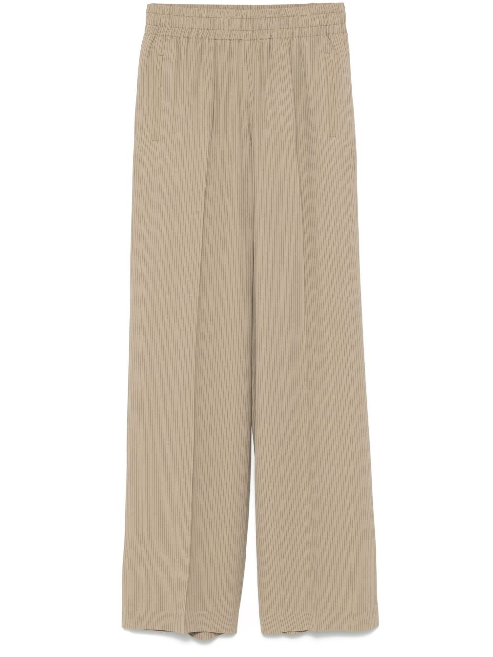 striped trousers Highlights - Almond beige - Elasticated waistband - Two side welt pockets - Logo charm Made in Italy Composition Lining: Cotton 100% Outer: Viscose 57%, Acetate 43% SIZE & FIT Model measurements Height 5 ft 11 in(1.8 m) Bust/Chest 31.49 in(80 cm) Hips 36.61 in(93 cm) Waist 24.4 in(62 cm) FittingInformation Designed with a wide-leg cut, these trousers allow for a close fit at the waist and offer a loose and roomy fit over the leg The elasticated waist allows for a comfortable fit Made from a midweight non-stretch fabric
