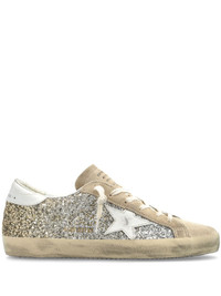 Super-Star Classic sneakers Highlights - Beige - Calf leather - Panelled design - Distressed effect - Glitter detailing - Front lace-up fastening - Contrasting branded heel counter - Signature star patch to the sides - Logo-print tongue - Round toe - Branded insole - Flat rubber sole Made in Italy Composition Leather 100%