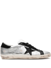 Super-Star distressed sneakers Highlights - Grey/silver-tone - Goatskin - Distressed effect - Logo patch to the side - Metallic sheen - Round toe - Front button fastening - Flat rubber sole Made in Italy Composition Leather 100% SIZE & FIT Measurement HEEL 0.98 in(2.5 cm)