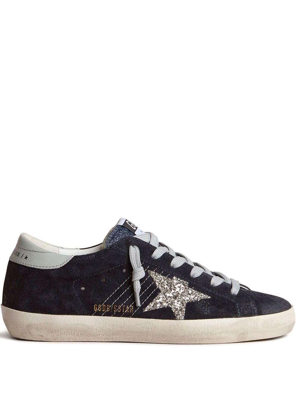 Super-Star glitter-detail sneakers Highlights - Blue - Glitter detail - Signature star patch to the sides - Lace-up fastening - Rubber sole Made in Italy Composition Lining: Cotton 100% Sole: Rubber 100% Outer: Buffalo Leather 100% Washing instructions Read Manufacturer Guidelines