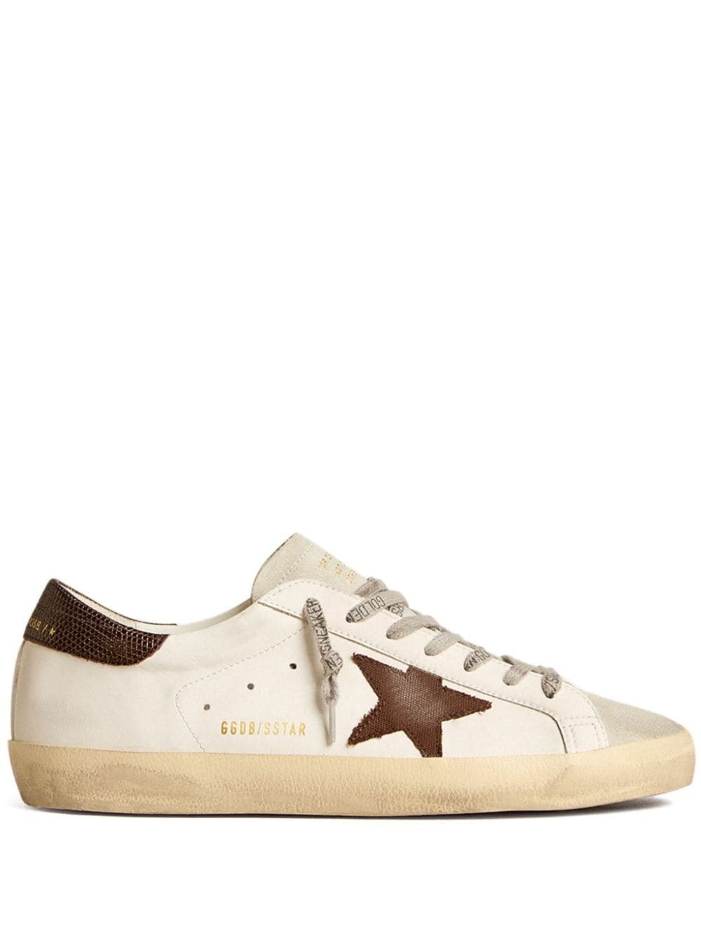 Super-Star low-top sneakers Highlights - Beige/brown - Calf leather - Distressed finish - Front lace-up fastening - Logo-print laces - Contrasting branded heel counter - Logo patch at the tongue - Logo lettering - Signature star patch to the sides - Suede panelling - Round toe - Branded insole - Flat rubber sole Made in Italy Composition Outer: Calf Leather 96% Lining: Cotton 41%, Calf Leather 31%, Polyurethane 18%, Polyester 7%, Viscose 3% Sole: Rubber 100%