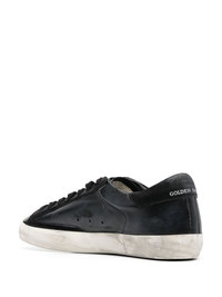 Super-Star low-top sneakers A signature silhouette for Golden Goose, the Super-Star sneakers are reinterpreted for SS23 with a black nappa leather upper that is accented with the instantly recognisable suede star to the side. Made in Italy Composition Outer: Calf Leather 100% Sole: Rubber 1% Lining: Cotton 100% SIZE & FIT Measurement Sole height 0.98 in(2.5 cm) Washing instructions Read Manufacturer Guidelines