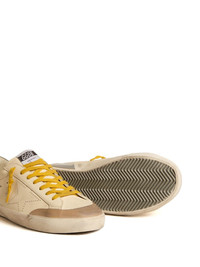Super-Star Penstar perforated star leather sneakers Highlights - Beige/yellow - Buffalo leather - Perforated detailing - Distressed effect - Suede panelling - Metallic heel panel - Logo patch at the tongue - Gold-tone logo lettering - Contrasting branded heel counter - Round toe - Front lace-up fastening - Branded insole - Rubber sole Made in Italy Composition Lining: Cotton 100% Outer: Buffalo Leather 100% Sole: Rubber 100%