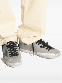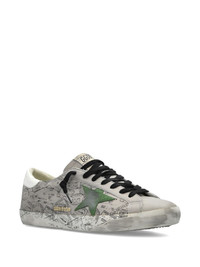 Super-Star stamp-print sneakers Highlights - Grey - Calf leather - Stamp print - Green star-detail - Black flat laces - Distressed effect Made in Italy Composition Outer: Calf Leather 100% Sole: Rubber 100% Lining: Calf Leather 100%