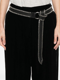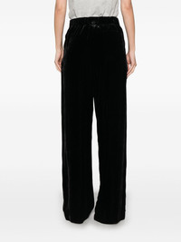 velvet trousers Highlights - Black - Concealed front button, hook and zip fastening - Rear elasticated waistband - Two diagonal pockets to the sides - Rear welt pocket Made in Italy Composition Outer: Viscose 82%, Silk 18% Lining: Polyester 100%, Viscose 100% SIZE & FIT Model measurements Height 5 ft 10 in(1.78 m) Bust/Chest 33.46 in(85 cm) Hips 36.22 in(92 cm) Waist 23.22 in(59 cm) FittingInformation Designed with a wide-leg cut, these trousers allow for a close fit at the waist and offer a loose and roomy fit over the leg The partially elasticated waistband offers increased movement and comfort at the waist Made from a midweight non-stretch fabric