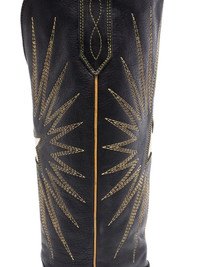 Women's boots in black leather with platinum star inlay