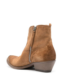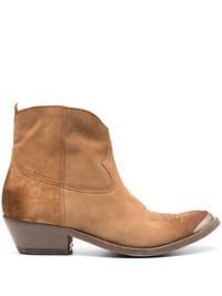 Young 45mm suede boots Highlights - Cognac brown - Calf suede - Western-style panelling - Decorative stitching - Metal toecap - Logo at the sole - Almond toe - Side zip fastening - Ankle-length - Pull-tab at the heel - Branded leather insole - Low cuban heel - Leather outsole - This piece comes complete with a protective dust bag. Made in Italy Composition Lining: Bos Taurus 100%, Calf Leather 100% Outer: Calf Suede 100% SIZE & FIT Measurement CIRCUMFERENCE 9.84 in(25 cm) HEEL 1.57 in(4 cm) HEIGHT 5.11 in(13 cm)
