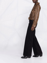 zip-fastening biker jacket Inspired by a vintage feel and 'perfect imperfection', this biker jacket from Golden Goose captures the brand's inspirations. Featuring distressed detailing through artisanal craftsmanship techniques, the garment is intended to be worn throughout the wearer's life and journeys, adding to its effect. Made in Italy Composition Outer: Calf Leather 100% Lining: Cotton 100%, Viscose 100% SIZE & FIT Model measurements Height 5 ft 10 in(1.77 m) Bust/Chest 32.28 in(82 cm) Hips 35.03 in(89 cm) Waist 25.19 in(64 cm) Measurement CHEST 32.28 in(82 cm) SLEEVE LENGTH 23.62 in(60 cm) LENGTH 20.07 in(51 cm) FittingInformation This piece fits true to size. We recommend you get your regular size Cut for a slim fit Made with a mid-weight non-stretch fabric Washing instructions Specialist Cleaning