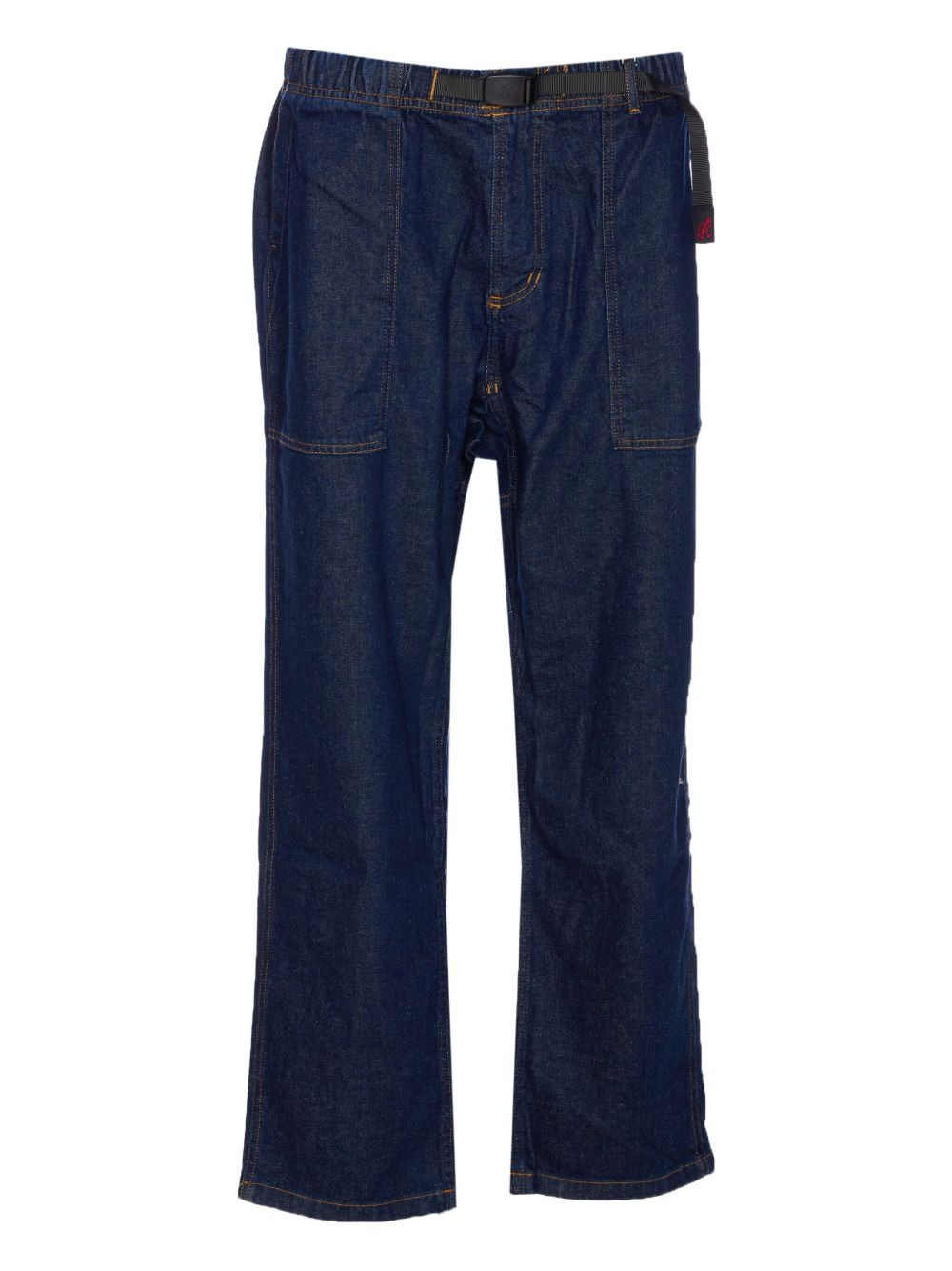 elastic-waist belted tapered jeans