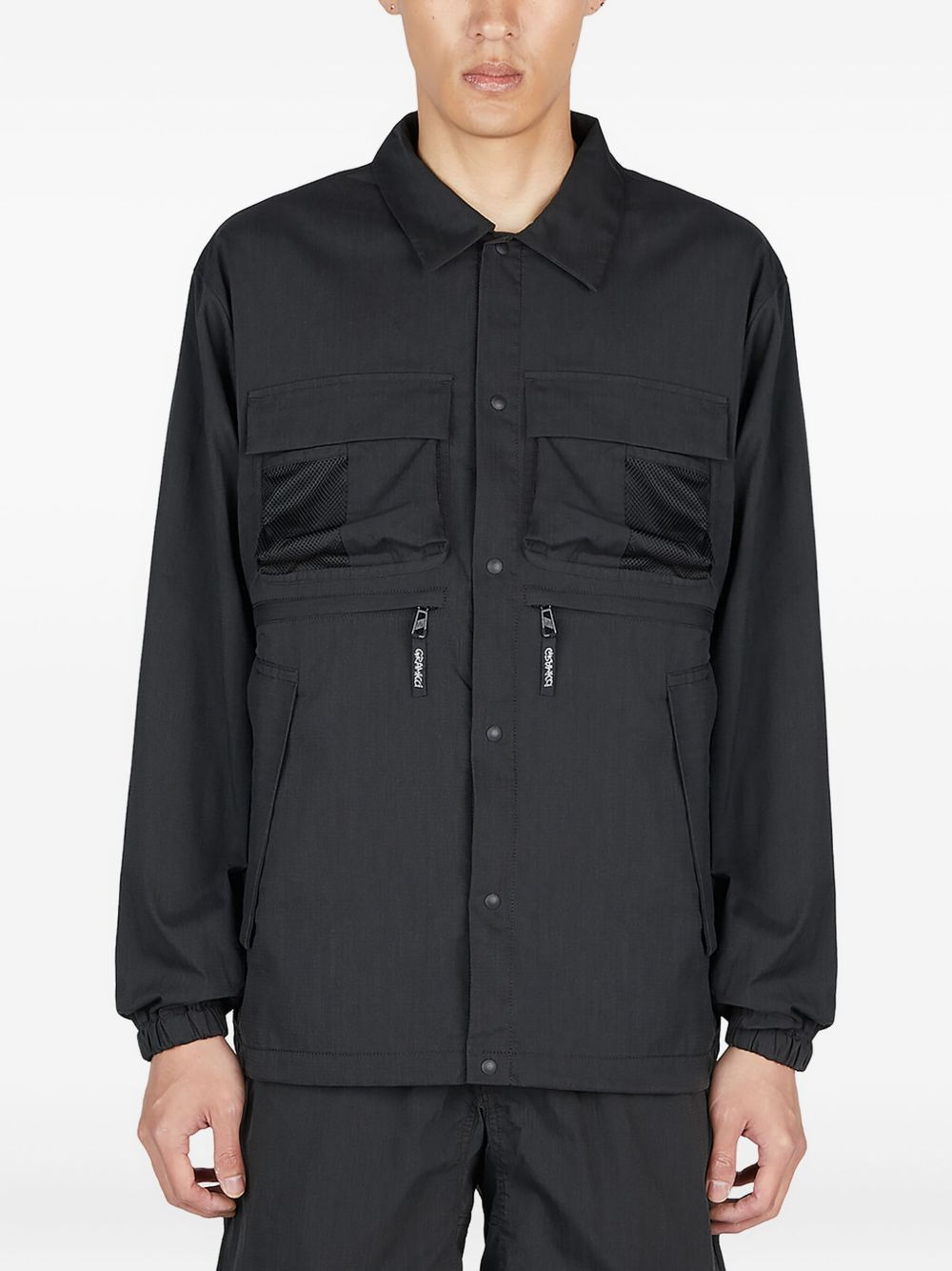 multi-pocket jacket Highlights - Black - Multiple pockets - Press stud front - Long sleeves - Elasticated cuffs - Straight hem Imported Composition Polyester 96%, Aramid 4% Washing instructions Read Manufacturer Guidelines